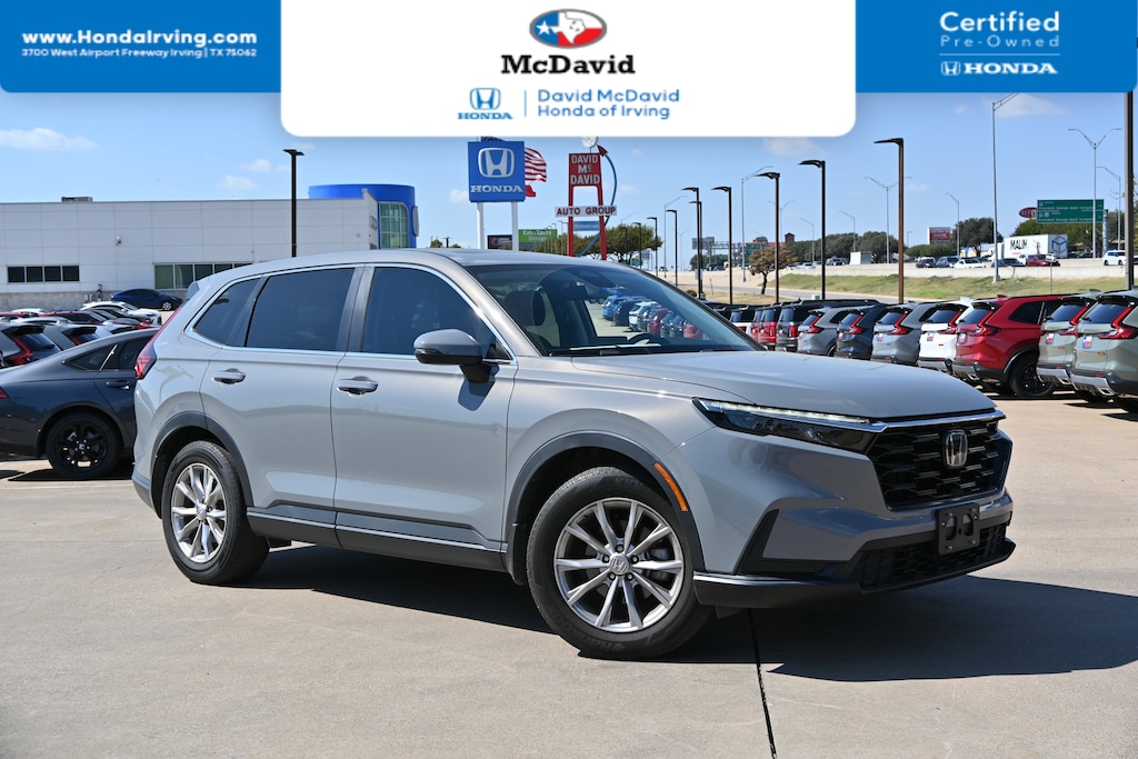 **Certified** Low miles with only 23,302 miles! Carfax One Owner! PRICED TO SELL QUICKLY! Research suggests it will not be available for long. This 2023 Honda CR-V EX has a great looking Urban Gray Pearl exterior and a Black interior! -Heated Front Seats- -Keyless Entry- -Remote Engine Start- -Backup Camera- This CR-V has many valuable options: -AM/FM Radio- -Aux Audio Input- -Auto Climate Control- -High Intensity Headlights- -Automatic Headlights- -Rear Seat Pass-Through- -Front Wheel Drive- -Multi-Zone Air Conditioning- -Security System- -Power Windows- -Power Mirrors- -Power Driver's Seat- -Steering Wheel Controls- -Cruise Control- -Rear Bench Seats- -Alloy Wheels- On top of all that, it has MANY safety features. -ABS Brakes- -Brake Assist- -Traction Control- -Stability Control- Our pricing is very competitive and our vehicles sell quickly. Please call us to confirm availability and to setup a time to drive this CR-V! Contact us at (469) 405-3340. We are located at 3700 W Airport Fwy, Irving, TX 75062