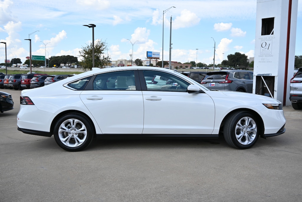 -CERTIFIED- This 2025 Honda Accord Sedan LX looks great with a clean Gray interior and Platinum White Pearl exterior! Bluetooth Keyless Entry Back Up Camera -LOW MILES!- PRICED TO SELL QUICKLY! RESEARCH SUGGESTS IT WILL NOT BE AVAILABLE FOR LONG. -GREAT GAS MILEAGE- If you view our website at: https://www.mcdavidhondairving.com/ you will have access to more photos, the full Value Report and a Vehicle History Report! Please call (469) 405-3340 Call us today to schedule a hassle-free test drive at our Toll Free Number! We are located at: 3700 W Airport Fwy, Irving, TX 75062. For more than 70 years, David McDavid Honda of Irving has been serving the automotive needs of drivers throughout the Dallas Fort Worth Metroplex. We stock a large selection of new and used Honda cars at great prices. If you need assistance with choosing a new car, obtaining financing, or have service and repair questions, our friendly and knowledgeable staff will get your questions answered. Our dealership is located in Irving, but we proudly serve the Dallas, Fort Worth, Arlington, and Grand Prairie and DFW area.