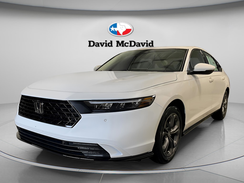 Recent Arrival! This 2026 Honda Accord Hybrid EX-L IN-TRANSIT in Platinum White Pearl comes with the following features: 4-Wheel Disc Brakes, 8 Speakers, ABS brakes, Adaptive Cruise Control: Adaptive Cruise Control (ACC) with Low-Speed Follow, Air Conditioning, Alloy wheels, AM/FM radio, Apple CarPlay/Android Auto, Auto High-beam Headlights, Auto-dimming Rear-View mirror, Automatic temperature control, Blind Spot Information (BSI) System warning, Brake assist, Bumpers: body-color, Compass, Delay-off headlights, Driver door bin, Driver vanity mirror, Dual front impact airbags, Dual front side impact airbags, Electronic Stability Control, Emergency communication system: HondaLink, Exterior Parking Camera Rear, Four wheel independent suspension, Front anti-roll bar, Front Bucket Seats, Front Center Armrest, Front dual zone A/C, Front reading lights, Fully automatic headlights, Heated door mirrors, Heated Front Bucket Seats, Heated front seats, Illuminated entry, Knee airbag, Lane departure: Lane Keeping Assist System (LKAS) active, Leather Shift Knob, Leather steering wheel, Leather-Trimmed Seat Trim, Low tire pressure warning, Memory seat, Occupant sensing airbag, Outside temperature display, Overhead airbag, Overhead console, Panic alarm, Passenger door bin, Passenger vanity mirror, Power door mirrors, Power driver seat, Power moonroof, Power passenger seat, Power steering, Power windows, Radio data system, Radio: 180-Watt Audio System, Rear anti-roll bar, Rear reading lights, Rear seat center armrest, Rear side impact airbag, Rear window defroster, Remote keyless entry, Security system, Speed control, Speed-sensing steering, Speed-Sensitive Wipers, Split folding rear seat, Steering wheel mounted audio controls, Telescoping steering wheel, Tilt steering wheel, Traction control, Trip computer, Turn signal indicator mirrors, Variably intermittent wipers, and Wheels: 17 x 7.5J Pewter Gray.