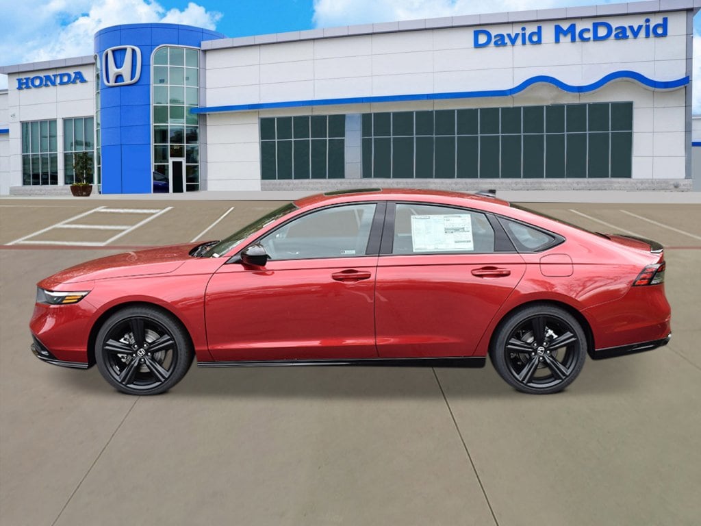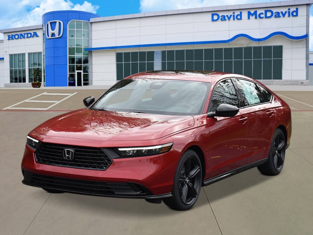 Recent Arrival! This 2026 Honda Accord Hybrid Sport-L IN-TRANSIT in Radiant Red Metallic comes with the following features: FRESH OIL CHANGE, Completed a 120 vehicle point inspection, and Completed detail 4-Wheel Disc Brakes, 8 Speakers, ABS brakes, Adaptive Cruise Control: Adaptive Cruise Control (ACC) with Low-Speed Follow, Air Conditioning, Alloy wheels, AM/FM radio, Apple CarPlay/Android Auto, Auto High-beam Headlights, Automatic temperature control, Blind Spot Information (BSI) System warning, Brake assist, Bumpers: body-color, Compass, Delay-off headlights, Driver door bin, Driver vanity mirror, Dual front impact airbags, Dual front side impact airbags, Electronic Stability Control, Emergency communication system: HondaLink, Exterior Parking Camera Rear, Four wheel independent suspension, Front anti-roll bar, Front Bucket Seats, Front Center Armrest, Front dual zone A/C, Front reading lights, Fully automatic headlights, Heated Front Bucket Seats, Heated front seats, Illuminated entry, Knee airbag, Lane departure: Lane Keeping Assist System (LKAS) active, Leather Shift Knob, Leather steering wheel, Leather-Trimmed Seat Trim, Low tire pressure warning, Memory seat, Occupant sensing airbag, Outside temperature display, Overhead airbag, Overhead console, Panic alarm, Passenger door bin, Passenger vanity mirror, Power door mirrors, Power driver seat, Power moonroof, Power passenger seat, Power steering, Power windows, Radio data system, Radio: 180-Watt Audio System, Rear anti-roll bar, Rear reading lights, Rear seat center armrest, Rear side impact airbag, Rear window defroster, Remote keyless entry, Security system, Speed control, Speed-sensing steering, Speed-Sensitive Wipers, Split folding rear seat, Spoiler, Steering wheel mounted audio controls, Telescoping steering wheel, Tilt steering wheel, Traction control, Trip computer, Variably intermittent wipers, and Wheels: 19 x 8.5J Matte Berlina Black.