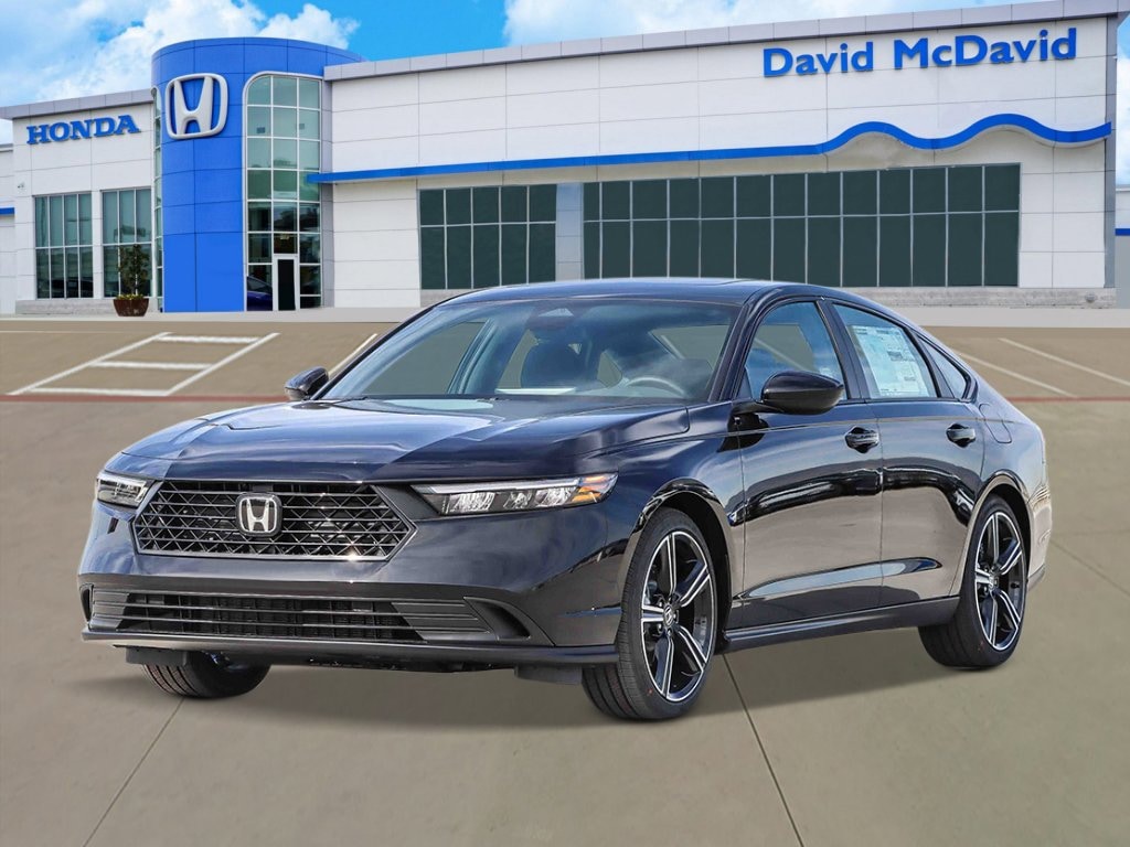 Recent Arrival! This 2026 Honda Accord Hybrid Sport IN-TRANSIT in Crystal Black Pearl comes with the following features: FRESH OIL CHANGE, Completed a 120 vehicle point inspection, and Completed detail 4-Wheel Disc Brakes, 8 Speakers, ABS brakes, Adaptive Cruise Control: Adaptive Cruise Control (ACC) with Low-Speed Follow, Air Conditioning, Alloy wheels, AM/FM radio, Apple CarPlay/Android Auto, Auto High-beam Headlights, Automatic temperature control, Blind Spot Information (BSI) System warning, Brake assist, Bumpers: body-color, Compass, Delay-off headlights, Driver door bin, Driver vanity mirror, Dual front impact airbags, Dual front side impact airbags, Electronic Stability Control, Emergency communication system: HondaLink, Exterior Parking Camera Rear, Fabric Seat Trim, Four wheel independent suspension, Front anti-roll bar, Front Bucket Seats, Front Center Armrest, Front dual zone A/C, Front reading lights, Fully automatic headlights, Heated Front Bucket Seats, Heated front seats, Illuminated entry, Knee airbag, Lane departure: Lane Keeping Assist System (LKAS) active, Leather Shift Knob, Leather steering wheel, Low tire pressure warning, Occupant sensing airbag, Outside temperature display, Overhead airbag, Overhead console, Panic alarm, Passenger door bin, Passenger vanity mirror, Power door mirrors, Power driver seat, Power moonroof, Power steering, Power windows, Radio data system, Radio: 180-Watt Audio System, Rear anti-roll bar, Rear reading lights, Rear seat center armrest, Rear side impact airbag, Rear window defroster, Remote keyless entry, Security system, Speed control, Speed-sensing steering, Speed-Sensitive Wipers, Split folding rear seat, Spoiler, Steering wheel mounted audio controls, Telescoping steering wheel, Tilt steering wheel, Traction control, Trip computer, Variably intermittent wipers, and Wheels: 19 x 8.5J Berlina Black.