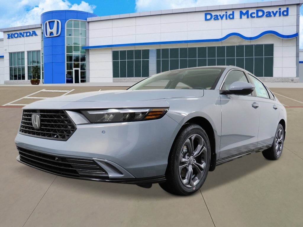 Recent Arrival! This 2026 Honda Accord Hybrid EX-L IN-TRANSIT in Urban Gray Pearl comes with the following features: FRESH OIL CHANGE, Completed a 120 vehicle point inspection, and Completed detail 4-Wheel Disc Brakes, 8 Speakers, ABS brakes, Adaptive Cruise Control: Adaptive Cruise Control (ACC) with Low-Speed Follow, Air Conditioning, Alloy wheels, AM/FM radio, Apple CarPlay/Android Auto, Auto High-beam Headlights, Auto-dimming Rear-View mirror, Automatic temperature control, Blind Spot Information (BSI) System warning, Brake assist, Bumpers: body-color, Compass, Delay-off headlights, Driver door bin, Driver vanity mirror, Dual front impact airbags, Dual front side impact airbags, Electronic Stability Control, Emergency communication system: HondaLink, Exterior Parking Camera Rear, Four wheel independent suspension, Front anti-roll bar, Front Bucket Seats, Front Center Armrest, Front dual zone A/C, Front reading lights, Fully automatic headlights, Heated door mirrors, Heated Front Bucket Seats, Heated front seats, Illuminated entry, Knee airbag, Lane departure: Lane Keeping Assist System (LKAS) active, Leather Shift Knob, Leather steering wheel, Leather-Trimmed Seat Trim, Low tire pressure warning, Memory seat, Occupant sensing airbag, Outside temperature display, Overhead airbag, Overhead console, Panic alarm, Passenger door bin, Passenger vanity mirror, Power door mirrors, Power driver seat, Power moonroof, Power passenger seat, Power steering, Power windows, Radio data system, Radio: 180-Watt Audio System, Rear anti-roll bar, Rear reading lights, Rear seat center armrest, Rear side impact airbag, Rear window defroster, Remote keyless entry, Security system, Speed control, Speed-sensing steering, Speed-Sensitive Wipers, Split folding rear seat, Steering wheel mounted audio controls, Telescoping steering wheel, Tilt steering wheel, Traction control, Trip computer, Turn signal indicator mirrors, Variably intermittent wipers, and Wheels: 17 x 7.5J Pewter Gray.