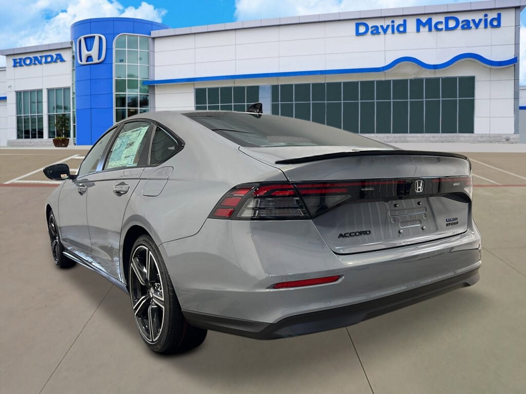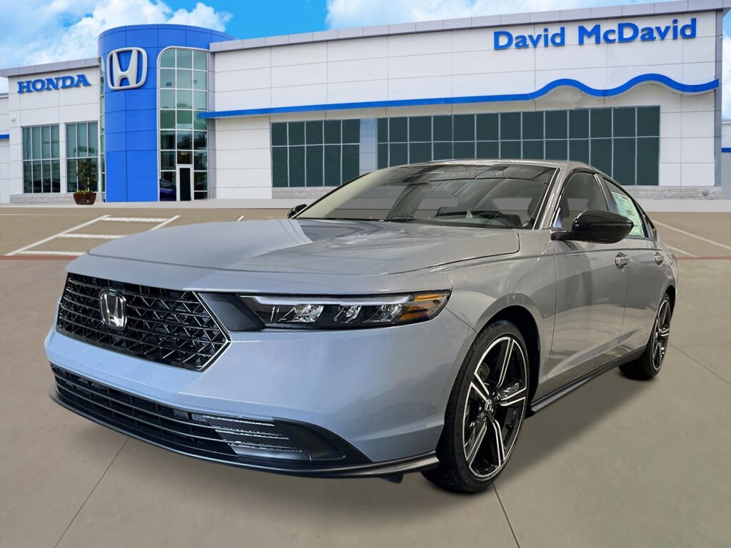 Recent Arrival! This 2026 Honda Accord Hybrid Sport IN-TRANSIT in Urban Gray Pearl comes with the following features: 4-Wheel Disc Brakes, 8 Speakers, ABS brakes, Adaptive Cruise Control: Adaptive Cruise Control (ACC) with Low-Speed Follow, Air Conditioning, Alloy wheels, AM/FM radio, Apple CarPlay/Android Auto, Auto High-beam Headlights, Automatic temperature control, Blind Spot Information (BSI) System warning, Brake assist, Bumpers: body-color, Compass, Delay-off headlights, Driver door bin, Driver vanity mirror, Dual front impact airbags, Dual front side impact airbags, Electronic Stability Control, Emergency communication system: HondaLink, Exterior Parking Camera Rear, Fabric Seat Trim, Four wheel independent suspension, Front anti-roll bar, Front Bucket Seats, Front Center Armrest, Front dual zone A/C, Front reading lights, Fully automatic headlights, Heated Front Bucket Seats, Heated front seats, Illuminated entry, Knee airbag, Lane departure: Lane Keeping Assist System (LKAS) active, Leather Shift Knob, Leather steering wheel, Low tire pressure warning, Occupant sensing airbag, Outside temperature display, Overhead airbag, Overhead console, Panic alarm, Passenger door bin, Passenger vanity mirror, Power door mirrors, Power driver seat, Power moonroof, Power steering, Power windows, Radio data system, Radio: 180-Watt Audio System, Rear anti-roll bar, Rear reading lights, Rear seat center armrest, Rear side impact airbag, Rear window defroster, Remote keyless entry, Security system, Speed control, Speed-sensing steering, Speed-Sensitive Wipers, Split folding rear seat, Spoiler, Steering wheel mounted audio controls, Telescoping steering wheel, Tilt steering wheel, Traction control, Trip computer, Variably intermittent wipers, and Wheels: 19 x 8.5J Berlina Black.