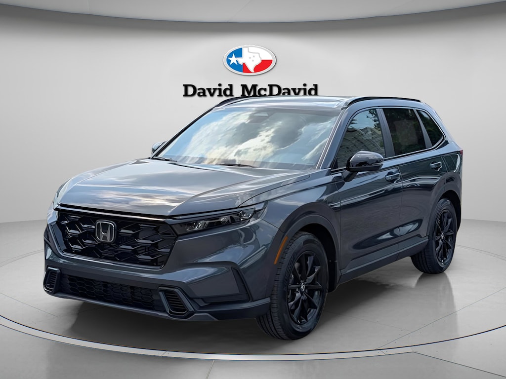 Recent Arrival! This 2026 Honda CR-V Hybrid Sport IN-TRANSIT in Meteorite Gray Metallic comes with the following features: 4-Wheel Disc Brakes, 6 Speakers, ABS brakes, Adaptive Cruise Control: Adaptive Cruise Control (ACC) with Low-Speed Follow, Air Conditioning, Alloy wheels, AM/FM radio, Apple CarPlay/Android Auto, Auto High-beam Headlights, Automatic temperature control, Blind Spot Information (BSI) System warning, Brake assist, Bumpers: body-color, Cloth Seat Trim, Compass, Delay-off headlights, Driver door bin, Driver vanity mirror, Dual front impact airbags, Dual front side impact airbags, Electronic Stability Control, Exterior Parking Camera Rear, Four wheel independent suspension, Front anti-roll bar, Front Bucket Seats, Front Center Armrest, Front dual zone A/C, Front reading lights, Fully automatic headlights, Heated door mirrors, Heated Front Bucket Seats, Heated front seats, Illuminated entry, Knee airbag, Leather Shift Knob, Leather steering wheel, Low tire pressure warning, Occupant sensing airbag, Outside temperature display, Overhead airbag, Overhead console, Panic alarm, Passenger door bin, Passenger vanity mirror, Power door mirrors, Power driver seat, Power moonroof, Power steering, Power windows, Radio data system, Radio: 240-Watt AM/FM Audio System, Rear anti-roll bar, Rear reading lights, Rear seat center armrest, Rear side impact airbag, Rear window defroster, Rear window wiper, Remote keyless entry, Security system, Speed control, Speed-sensing steering, Speed-Sensitive Wipers, Split folding rear seat, Spoiler, Steering wheel mounted audio controls, Telescoping steering wheel, Tilt steering wheel, Traction control, Trip computer, Turn signal indicator mirrors, Variably intermittent wipers, and Wheels: 18 Berlina Black.