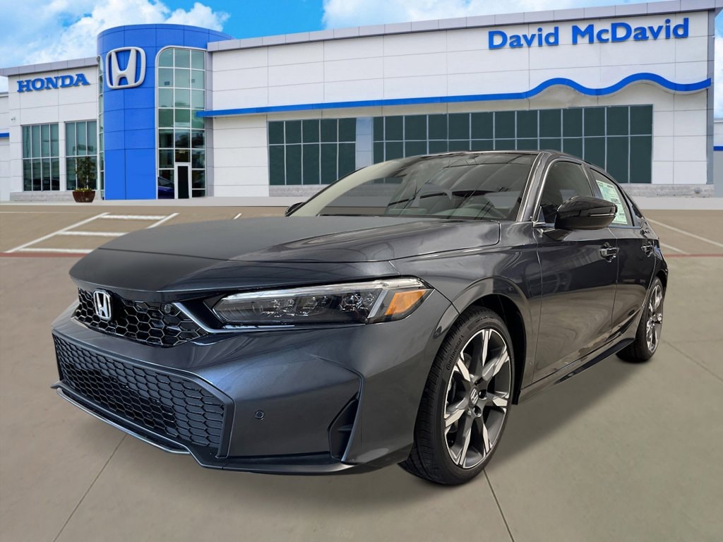 This 2026 Honda Civic Sedan Hybrid Sport Touring will sell fast! This Civic Sedan Hybrid has many valuable options! Backup Camera. Leather seats. Navigation. Bluetooth Connectivity. -Heated Front Seats -Heated Mirrors -Auto Climate Control -Premium Sound System -High Intensity Headlights -Automatic Headlights -Front Wheel Drive -Multi-Zone Air Conditioning -Remote Start -Security System -Parking Sensors -Parking Assist -Keyless Entry -Rain Sensing Wipers -Steering Wheel Controls -Leather Steering Wheel -ContinuouslyVariable Transmission -Rear Bench Seats -Alloy Wheels On top of that, it has many safety features! -Brake Assist -Traction Control -Stability Control Save money at the pump, knowing this Honda Civic Sedan Hybrid gets 47.0/50.0 MPG! Call David McDavid Honda of Frisco at (469) 405-3754 to confirm availability and schedule a no-obligation test drive! We are located at 1601 North Dallas Parkway, Frisco, TX 75034.