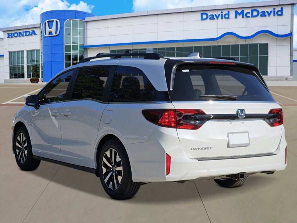 Recent Arrival! This 2026 Honda Odyssey EX-L IN-TRANSIT in Platinum White Pearl comes with the following features: Utility+ Package (Roof Rails), 18 Machine-Finished Alloy Wheels, 3rd row seats: split-bench, 4-Wheel Disc Brakes, 7 Speakers, ABS brakes, Adaptive Cruise Control: Adaptive Cruise Control (ACC) with Low-Speed Follow, Air Conditioning, Alloy wheels, AM/FM radio: SiriusXM, Anti-whiplash front head restraints, Apple CarPlay/Android Auto, Auto High-beam Headlights, Auto-dimming Rear-View mirror, Automatic temperature control, Blind Spot Information (BSI) System warning, Brake assist, Bumpers: body-color, Delay-off headlights, Driver door bin, Driver vanity mirror, Driver's Seat Mounted Armrest, Dual front impact airbags, Dual front side impact airbags, Electronic Stability Control, Exterior Parking Camera Rear, Four wheel independent suspension, Front anti-roll bar, Front Bucket Seats, Front dual zone A/C, Front fog lights, Front reading lights, Fully automatic headlights, Garage door transmitter: HomeLink, Heated door mirrors, Heated Front Bucket Seats, Heated front seats, Illuminated entry, Knee airbag, Lane departure: Lane Keeping Assist System (LKAS) active, Leather steering wheel, Leather-Trimmed Seats, Low tire pressure warning, Memory seat, Occupant sensing airbag, Outside temperature display, Overhead airbag, Overhead console, Panic alarm, Passenger door bin, Passenger seat mounted armrest, Passenger vanity mirror, Power door mirrors, Power driver seat, Power Liftgate, Power moonroof, Power passenger seat, Power steering, Power windows, Radio data system, Radio: 160-Watt AM/FM/HD/SiriusXM Audio System, Rear air conditioning, Rear anti-roll bar, Rear reading lights, Rear seat center armrest, Rear window defroster, Rear window wiper, Reclining 3rd row seat, Remote keyless entry, Security system, Speed control, Speed-sensing steering, Speed-Sensitive Wipers, Split folding rear seat, Spoiler, Steering wheel mounted audio controls, Tachometer, Telescoping steering wheel, Tilt steering wheel, Traction control, Trip computer, Turn signal indicator mirrors, and Variably intermittent wipers.
