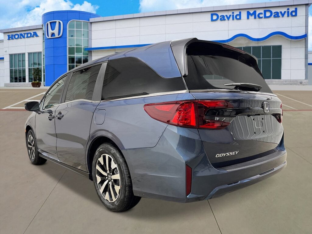 Recent Arrival! This 2026 Honda Odyssey EX-L IN-TRANSIT in Smoke Blue Pearl comes with the following features: 18 Machine-Finished Alloy Wheels, 3rd row seats: split-bench, 4-Wheel Disc Brakes, 7 Speakers, ABS brakes, Adaptive Cruise Control: Adaptive Cruise Control (ACC) with Low-Speed Follow, Air Conditioning, Alloy wheels, AM/FM radio: SiriusXM, Anti-whiplash front head restraints, Apple CarPlay/Android Auto, Auto High-beam Headlights, Auto-dimming Rear-View mirror, Automatic temperature control, Blind Spot Information (BSI) System warning, Brake assist, Bumpers: body-color, Delay-off headlights, Driver door bin, Driver vanity mirror, Driver's Seat Mounted Armrest, Dual front impact airbags, Dual front side impact airbags, Electronic Stability Control, Exterior Parking Camera Rear, Four wheel independent suspension, Front anti-roll bar, Front Bucket Seats, Front dual zone A/C, Front fog lights, Front reading lights, Fully automatic headlights, Garage door transmitter: HomeLink, Heated door mirrors, Heated Front Bucket Seats, Heated front seats, Illuminated entry, Knee airbag, Lane departure: Lane Keeping Assist System (LKAS) active, Leather steering wheel, Leather-Trimmed Seats, Low tire pressure warning, Memory seat, Occupant sensing airbag, Outside temperature display, Overhead airbag, Overhead console, Panic alarm, Passenger door bin, Passenger seat mounted armrest, Passenger vanity mirror, Power door mirrors, Power driver seat, Power Liftgate, Power moonroof, Power passenger seat, Power steering, Power windows, Radio data system, Radio: 160-Watt AM/FM/HD/SiriusXM Audio System, Rear air conditioning, Rear anti-roll bar, Rear reading lights, Rear seat center armrest, Rear window defroster, Rear window wiper, Reclining 3rd row seat, Remote keyless entry, Security system, Speed control, Speed-sensing steering, Speed-Sensitive Wipers, Split folding rear seat, Spoiler, Steering wheel mounted audio controls, Tachometer, Telescoping steering wheel, Tilt steering wheel, Traction control, Trip computer, Turn signal indicator mirrors, and Variably intermittent wipers.