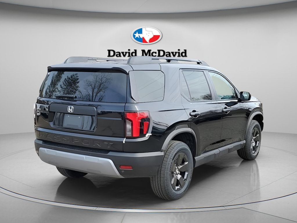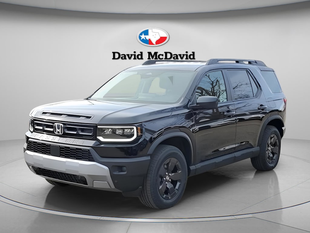 This 2026 Honda Passport RTL IN-TRANSIT in Crystal Black Pearl comes with the following features: Function Package (Door Sill Films), 4-Wheel Disc Brakes, 9 Speakers, ABS brakes, Adaptive Cruise Control: Adaptive Cruise Control (ACC) with Low-Speed Follow, Air Conditioning, Alloy wheels, Apple CarPlay/Android Auto, Auto High-beam Headlights, Auto-dimming Rear-View mirror, Automatic temperature control, Blind Spot Information (BSI) System warning, Brake assist, Compass, Delay-off headlights, Driver door bin, Driver vanity mirror, Driver's Seat Mounted Armrest, Dual front impact airbags, Dual front side impact airbags, Electronic Stability Control, Emergency communication system: HondaLink, Exterior Parking Camera Rear, Four wheel independent suspension, Front anti-roll bar, Front Bucket Seats, Front Center Armrest, Front dual zone A/C, Front reading lights, Fully automatic headlights, Heated door mirrors, Heated Front Bucket Seats, Heated front seats, HVAC memory, Illuminated entry, Knee airbag, Lane departure: Lane Keeping Assist System (LKAS) active, Leather and Cloth Seat Trim, Leather steering wheel, Low tire pressure warning, Memory seat, Navigation system: Google Maps, Occupant sensing airbag, Outside temperature display, Overhead airbag, Overhead console, Panic alarm, Passenger door bin, Passenger seat mounted armrest, Passenger vanity mirror, Power door mirrors, Power driver seat, Power Liftgate, Power passenger seat, Power steering, Power windows, Radio data system, Radio: Audio System with 9 Speakers, Rear air conditioning, Rear anti-roll bar, Rear reading lights, Rear seat center armrest, Rear window defroster, Rear window wiper, Remote keyless entry, Security system, Speed control, Speed-sensing steering, Split folding rear seat, Spoiler, Steering wheel mounted audio controls, Tachometer, Telescoping steering wheel, Tilt steering wheel, Traction control, Trip computer, Variably intermittent wipers, and Wheels: 18 Shark Grey Alloy.