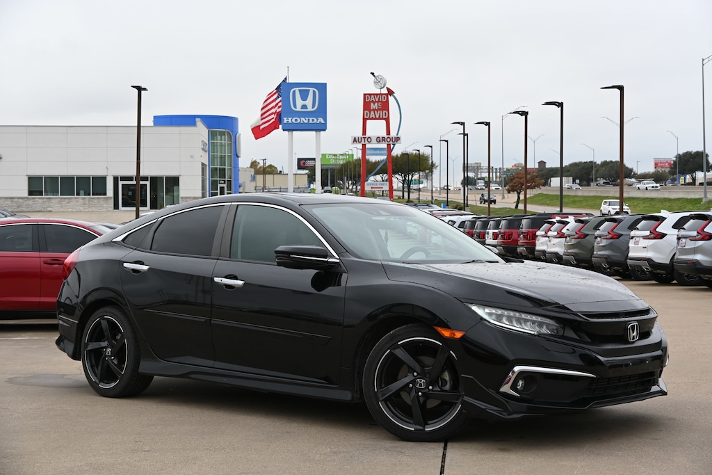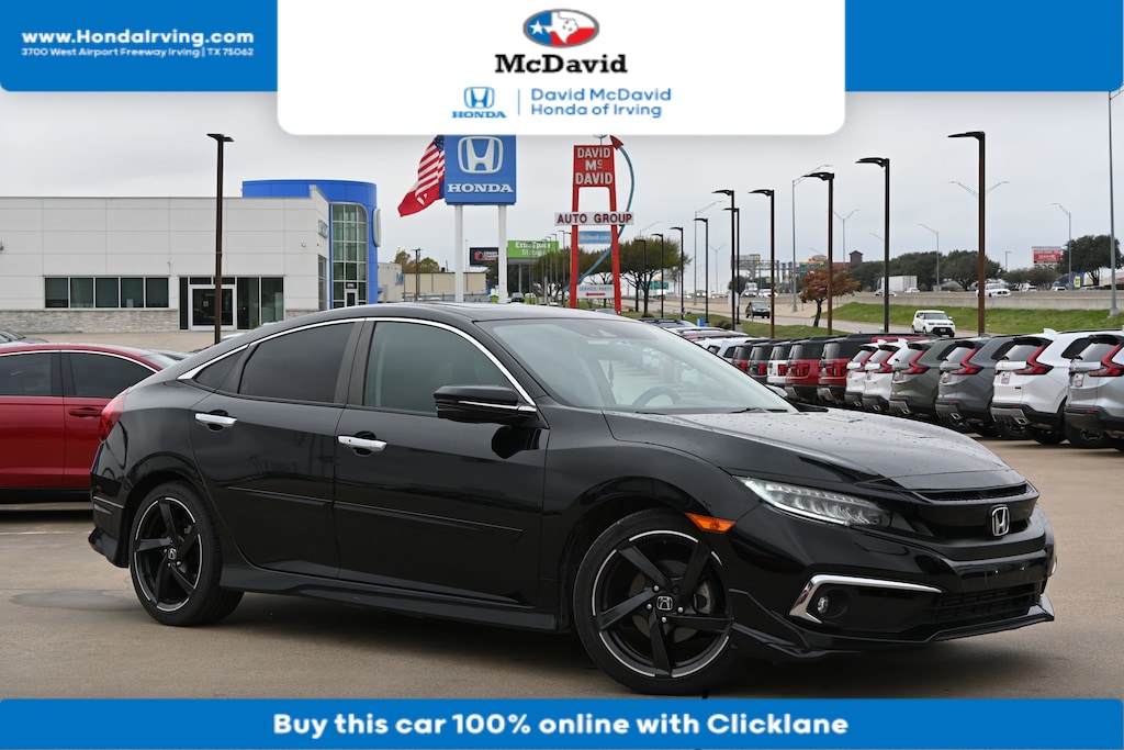 NEW ARRIVAL! This 2020 Honda Civic Sedan Touring looks great with a clean Black interior with leather seats and Crystal Black Pearl exterior! Bluetooth Heated Front Seats Keyless Entry Remote Engine Start Back Up Camera Navigation PRICED TO SELL QUICKLY! RESEARCH SUGGESTS IT WILL NOT BE AVAILABLE FOR LONG. -GREAT GAS MILEAGE- If you view our website at: https://www.mcdavidhondairving.com/ you will have access to more photos, the full Value Report and a Vehicle History Report! Please call (469) 405-3340 Call us today to schedule a hassle-free test drive at our Toll Free Number! We are located at: 3700 W Airport Fwy, Irving, TX 75062. For more than 70 years, David McDavid Honda of Irving has been serving the automotive needs of drivers throughout the Dallas Fort Worth Metroplex. We stock a large selection of new and used Honda cars at great prices. If you need assistance with choosing a new car, obtaining financing, or have service and repair questions, our friendly and knowledgeable staff will get your questions answered. Our dealership is located in Irving, but we proudly serve the Dallas, Fort Worth, Arlington, and Grand Prairie and DFW area.
