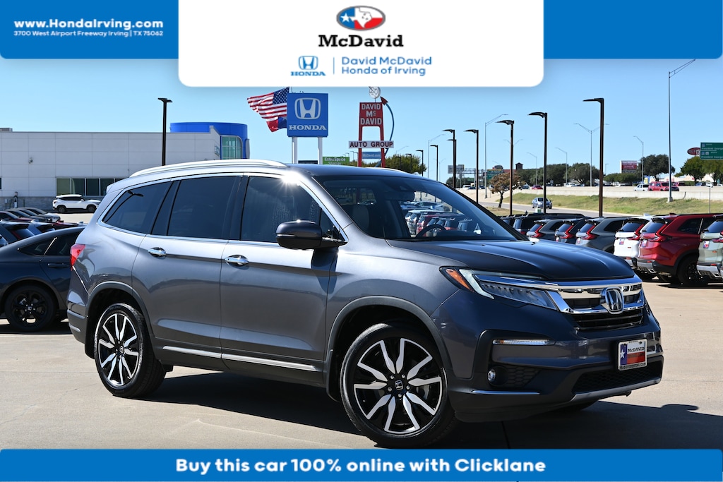 CARFAX 1-OWNER! This Modern Steel Metallic 2022 Honda Pilot Touring 7-Passenger with Gray interior is a 100% CARFAX Guarantee vehicle. This Pilot is equipped with -Bluetooth Connectivity- -Heated Front Seats- -Keyless Entry- -Remote Engine Start- -Backup Camera- -Navigation- -DVD Entertainment- -Power Liftgate- -Leather- -3rd Row Seating- -Parking Sensors- -Alloy Wheels- -Smart-Key-Push Button Start- -Power Driver's Seat- -Heated Rear Seats- -Rear Bucket Seats- -Front Bucket Seats- -Memory Seats- -Multi-Zone Air Conditioning- -Auto Climate Control- -Rear Air Conditioning- -Premium Sound System- -Satellite Radio Ready- -Auxiliary Input- -Power Windows- -Power Locks- -Cruise Control- -Fog Lights- -Rear Spoiler- -Roof Rack- -Tire Pressure Monitoring System- -Traction Control- -Automatic Headlights- -Front Wheel Drive- -Homelink- -HD Radio- -Heated Mirrors- -AM/FM Radio- -Lumbar Support- -Parking Sensors- -Rear Seat Audio Controls- -Security System- -Stability Control- -Steering Wheel Controls- -ABS Brakes- and many other amenities that are sure to please. Based on the excellent condition of this vehicle, along with the options and color, this Pilot is sure to sell fast. Our pricing is very competitive and our vehicles sell quickly. Please call us to confirm availability and to setup a time to drive this Pilot! Contact us at (469) 405-3340. We are located at 3700 W Airport Fwy, Irving, TX 75062