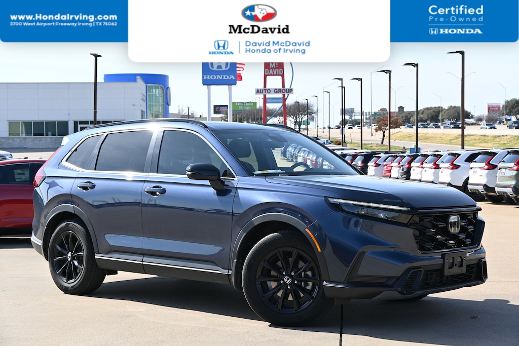 NEW ARRIVAL! -CERTIFIED- -CARFAX ONE OWNER- This 2023 Honda CR-V Hybrid Sport looks great with a clean Black interior and Still Night Pearl exterior! Heated Front Seats Keyless Entry Remote Engine Start Back Up Camera -LOW MILES!- PRICED TO SELL QUICKLY! RESEARCH SUGGESTS IT WILL NOT BE AVAILABLE FOR LONG. -GREAT GAS MILEAGE- If you view our website at: https://www.mcdavidhondairving.com/ you will have access to more photos, the full Value Report and a Vehicle History Report! Please call (469) 405-3340 Call us today to schedule a hassle-free test drive at our Toll Free Number! We are located at: 3700 W Airport Fwy, Irving, TX 75062. For more than 70 years, David McDavid Honda of Irving has been serving the automotive needs of drivers throughout the Dallas Fort Worth Metroplex. We stock a large selection of new and used Honda cars at great prices. If you need assistance with choosing a new car, obtaining financing, or have service and repair questions, our friendly and knowledgeable staff will get your questions answered. Our dealership is located in Irving, but we proudly serve the Dallas, Fort Worth, Arlington, and Grand Prairie and DFW area.