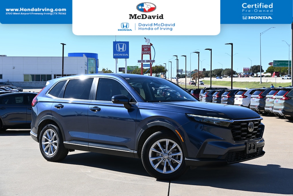 NEW ARRIVAL! -CERTIFIED- -CARFAX ONE OWNER- This 2024 Honda CR-V EX looks great with a clean Black interior and Canyon River Blue Metallic exterior!  Bluetooth Heated Front Seats Keyless Entry Remote Engine Start Back Up Camera -LOW MILES!- PRICED TO SELL QUICKLY! RESEARCH SUGGESTS IT WILL NOT BE AVAILABLE FOR LONG. -GREAT GAS MILEAGE- If you view our website at: https://www.mcdavidhondairving.com/ you will have access to more photos, the full Value Report and a Vehicle History Report! Please call (469) 405-3340 Call us today to schedule a hassle-free test drive at our Toll Free Number! We are located at: 3700 W Airport Fwy, Irving, TX 75062. For more than 70 years, David McDavid Honda of Irving has been serving the automotive needs of drivers throughout the Dallas Fort Worth Metroplex. We stock a large selection of new and used Honda cars at great prices. If you need assistance with choosing a new car, obtaining financing, or have service and repair questions, our friendly and knowledgeable staff will get your questions answered. Our dealership is located in Irving, but we proudly serve the Dallas, Fort Worth, Arlington, and Grand Prairie and DFW area.