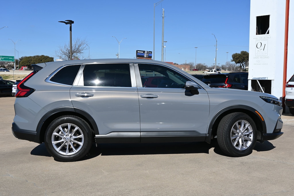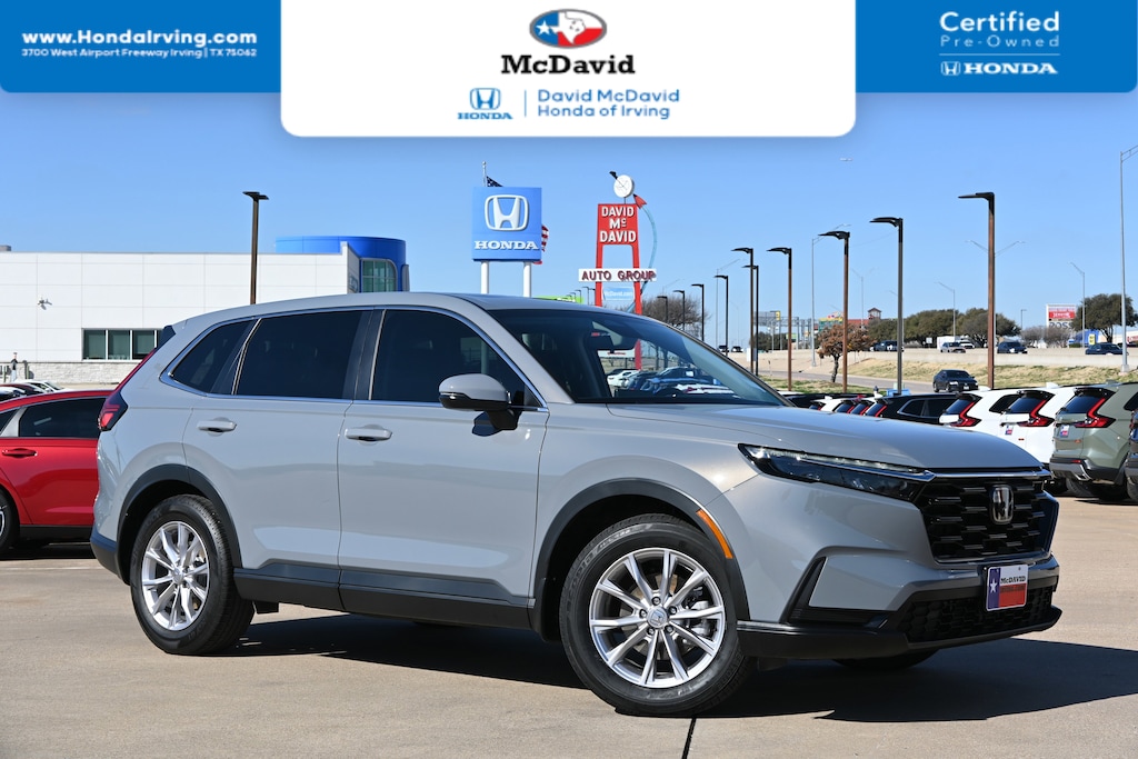 -CERTIFIED- -CARFAX ONE OWNER- This 2025 Honda CR-V EX looks great with a clean Gray interior and Solar Silver Metallic exterior! Bluetooth Heated Front Seats Keyless Entry Remote Engine Start Back Up Camera PRICED TO SELL QUICKLY! RESEARCH SUGGESTS IT WILL NOT BE AVAILABLE FOR LONG. -GREAT GAS MILEAGE- If you view our website at: https://www.mcdavidhondairving.com/ you will have access to more photos, the full Value Report and a Vehicle History Report! Please call (469) 405-3340 Call us today to schedule a hassle-free test drive at our Toll Free Number! We are located at: 3700 W Airport Fwy, Irving, TX 75062. For more than 70 years, David McDavid Honda of Irving has been serving the automotive needs of drivers throughout the Dallas Fort Worth Metroplex. We stock a large selection of new and used Honda cars at great prices. If you need assistance with choosing a new car, obtaining financing, or have service and repair questions, our friendly and knowledgeable staff will get your questions answered. Our dealership is located in Irving, but we proudly serve the Dallas, Fort Worth, Arlington, and Grand Prairie and DFW area.