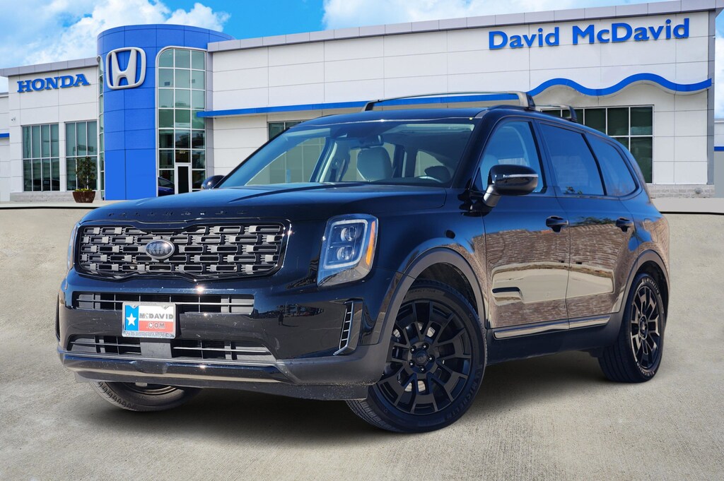 CLEAN CARFAX, 2nd Row Captain Chairs, 3.648 Axle Ratio, 3rd row seats: split-bench, 4-Wheel Disc Brakes, 6 Speakers, ABS brakes, Air Conditioning, Alloy wheels, AM/FM radio: SiriusXM, Apple CarPlay & Android Auto, Auto-dimming Rear-View mirror, Automatic temperature control, Black Finish Radiator Grille, Brake assist, Bumpers: body-color, Carpeted Floor Mats, Compass, Delay-off headlights, Driver door bin, Driver vanity mirror, Dual front impact airbags, Dual front side impact airbags, Electronic Stability Control, Emergency communication system: 911 Connect, EX Premium Package, Exclusive Black Headlight Bezels, Four wheel independent suspension, Front & Rear Gloss Black Finish Bumper Skid Plates, Front & Rear KIA Logo, Front anti-roll bar, Front Bucket Seats, Front Center Armrest, Front dual zone A/C, Front reading lights, Fully automatic headlights, Gloss Black Finish Exterior Emblems, Gloss Black Finish Front & Rear Door Garnish, Gloss Black Finish Roof Rails, Heated & Ventilated Front Bucket Seats, Heated door mirrors, Heated front seats, Heated steering wheel, Illuminated entry, Knee airbag, Leather Seat Trim, Leather Shift Knob, Leather steering wheel, LED Headlamps, Low tire pressure warning, Mud Guard Kit, Multicolored Interior Light Kit, Navigation System, Nightfall Edition Package, Occupant sensing airbag, Outside temperature display, Overhead airbag, Overhead console, Panic alarm, Passenger door bin, Passenger vanity mirror, Power door mirrors, Power driver seat, Power Liftgate, Power moonroof, Power passenger seat, Power steering, Power windows, Radio data system, Radio: AM/FM/SIRIUS Display Audio, Rear air conditioning, Rear anti-roll bar, Rear audio controls, Rear reading lights, Rear seat center armrest, Rear window defroster, Rear window wiper, Reclining 3rd row seat, Remote keyless entry, Roof rack: rails only, Satin Chrome Roof Rails, Security system, Self Leveling Rear Suspension, Smart Key w/ Push Button and Remote Start, Speed control, Speed-sensing steering, Split folding rear seat, Spoiler, Steering wheel mounted audio controls, Tachometer, Telescoping steering wheel, Tilt steering wheel, Tow Hitch w/Harness (TOF), Towing Package, Traction control, Trip computer, Turn signal indicator mirrors, Variably intermittent wipers, Ventilated front seats, Wheels: 7.5 x 18 Machined Finish Alloy, Wheels: 7.5 x 20 Exclusive Black Finish Alloy, Wheels: 7.5 x 20 Machined Finish Alloy.