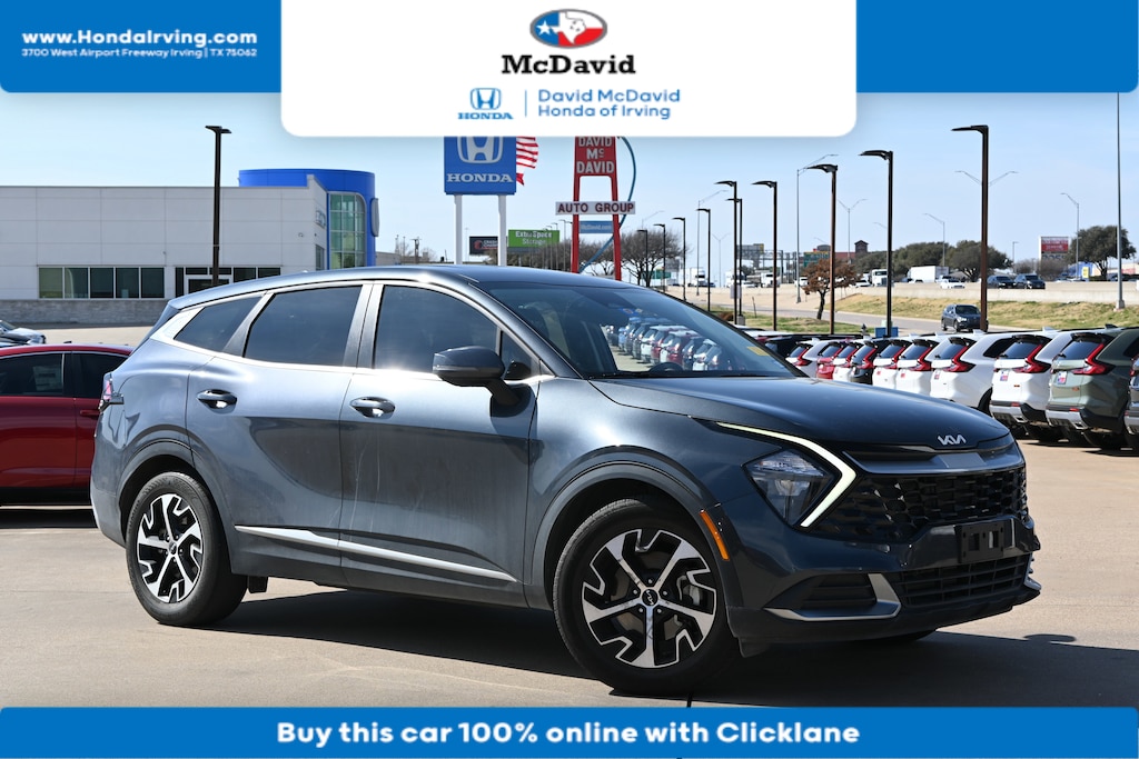New Arrival! CARFAX ONE OWNER! PRICED TO SELL QUICKLY! RESEARCH SUGGESTS IT WILL NOT BE AVAILABLE FOR LONG. This 2023 Kia Sportage EX has a sharp Gravity Gray exterior and a super clean Black interior! Bluetooth Heated Front Seats Keyless Entry Backup Camera Navigation LOW MILES FOR A 2023! The navigation system is best in class and very easy to use! You can find more information on this Sportage on our website: https://www.mcdavidhondairving.com/. Our vehicles are value priced and move quickly. Be sure to call us to confirm availability and to schedule a hassle free test drive (469) 405-3340! We are located at: 3700 W Airport Fwy, Irving, TX 75062. For more than 70 years, David McDavid Honda of Irving has been serving the automotive needs of drivers throughout the Dallas Fort Worth Metroplex. We stock a large selection of new and used Honda cars at great prices. If you need assistance with choosing a new car, obtaining financing, or have service and repair questions, our friendly and knowledgeable staff will get your questions answered. Our dealership is located in Irving, but we proudly serve the Dallas, Fort Worth, Arlington, and Grand Prairie and DFW area.